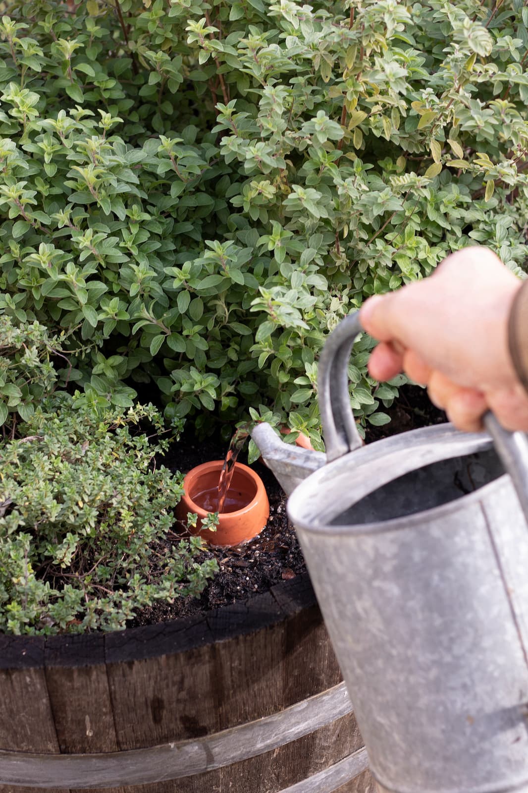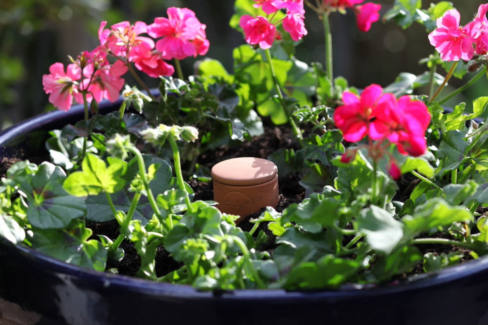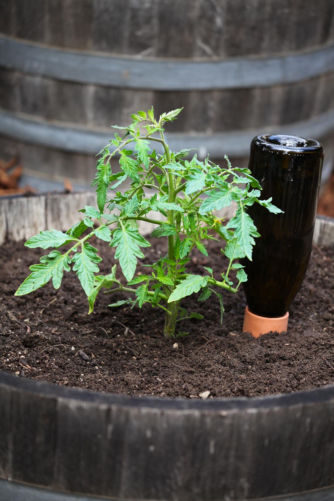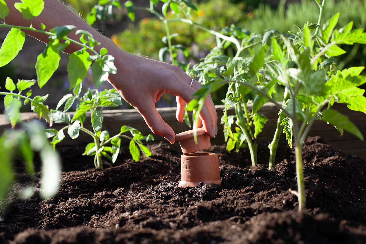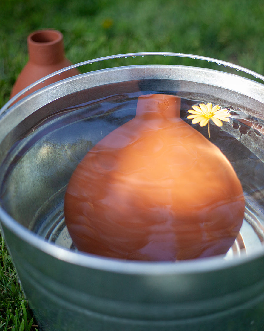Plants stay hydrated while you're away. Simply fill the Olla watering pot with water before you leave and let it do its job. For extended vacations, use with upcycled water or wine bottles.