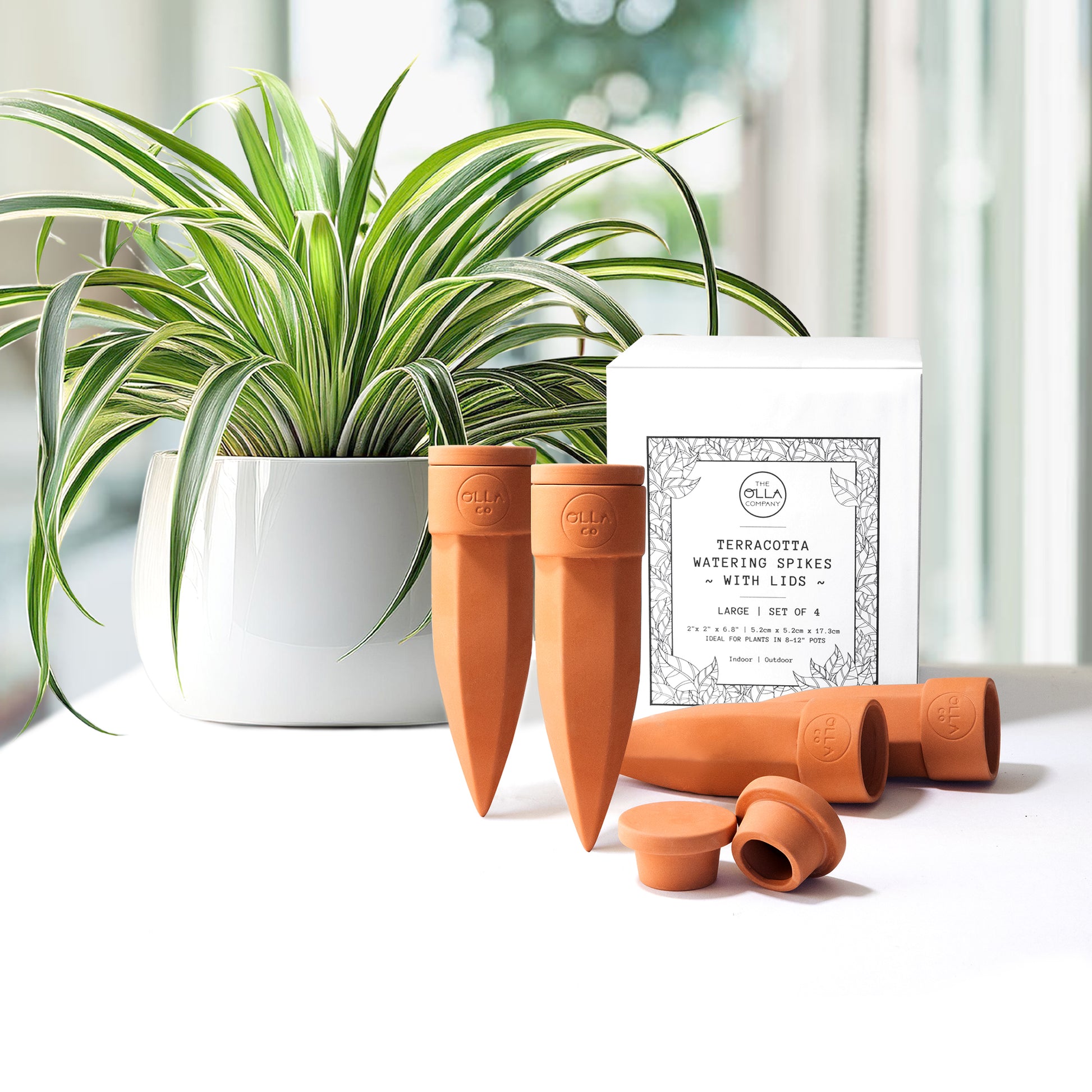 Olla spikes slowly release water into the soil when it's needed, giving roots balanced, consistent moisture.